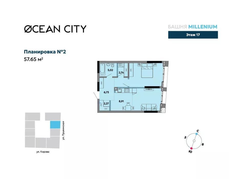 OCEAN CITY — это не просто адрес, а центр притяжения Ижевска, где Ты на пересечении главных ритмов города: Пушкинской и Кирова. Здесь рождается новый ориентир — самая высокая жилая башня города.