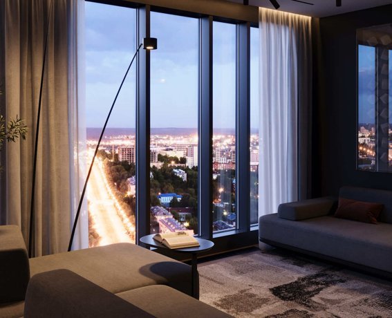 Погрузись в атмосферу высоты: башня MILLENIUM — 33 этажа, где панорамы города и набережной становятся частью Твоего личного пространства.